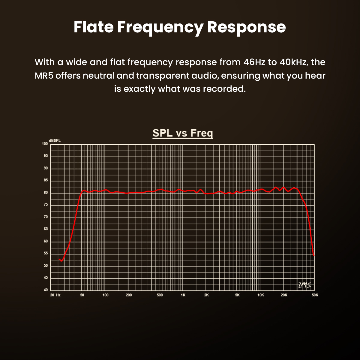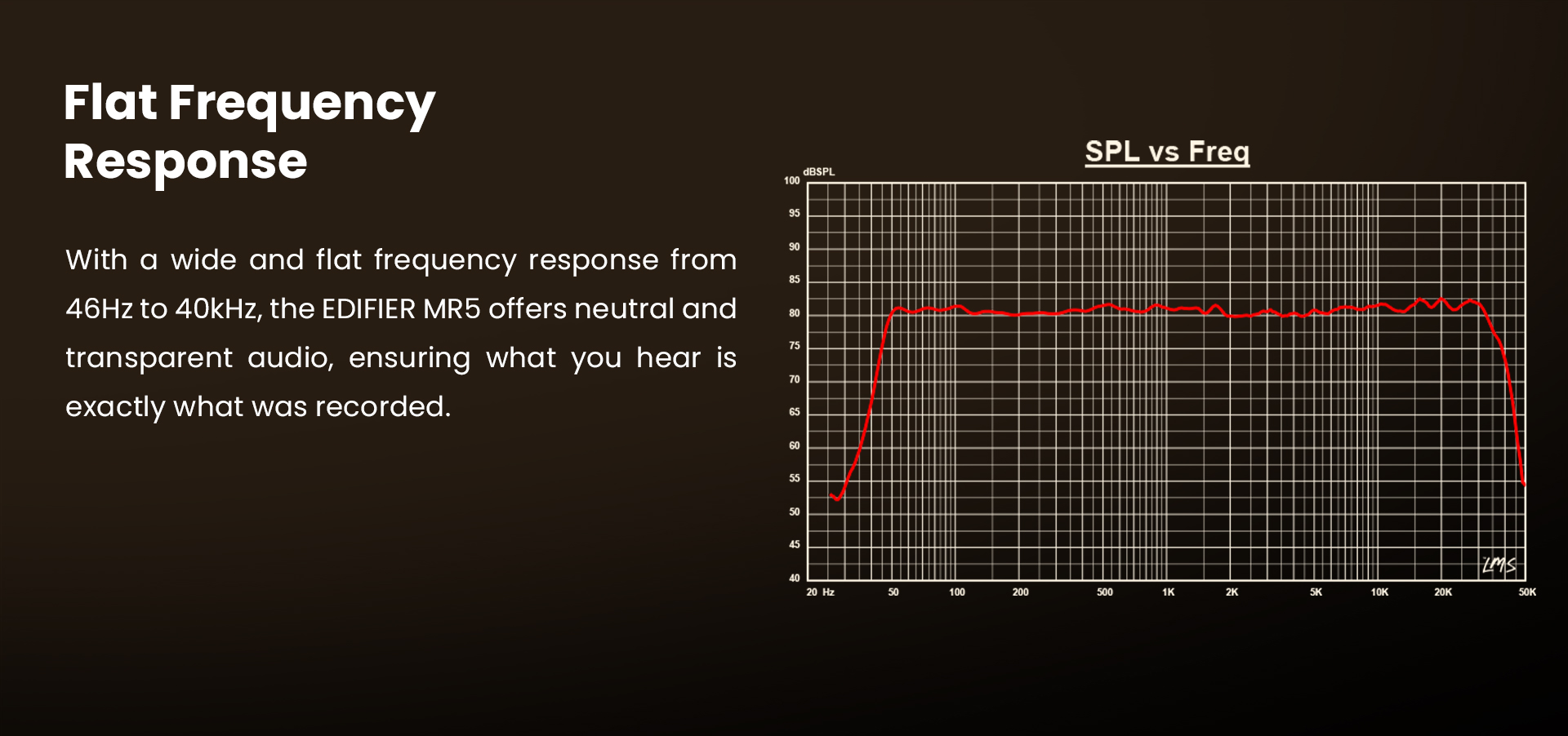 Flat frequency response from 46Hz to 40kHz for honest reproduction of details and nuances