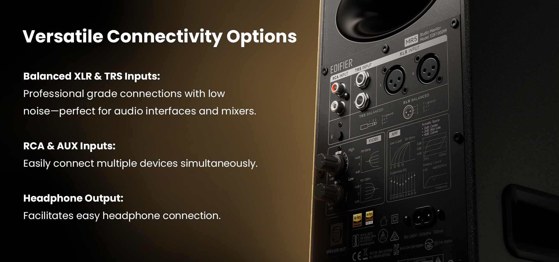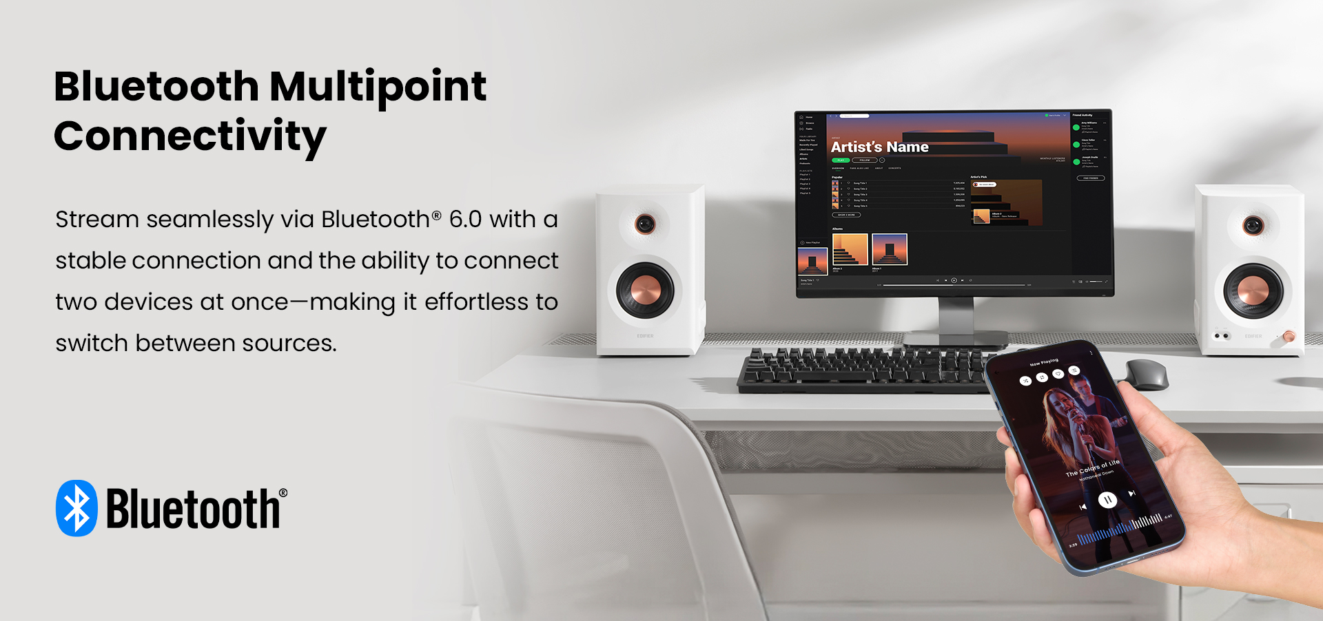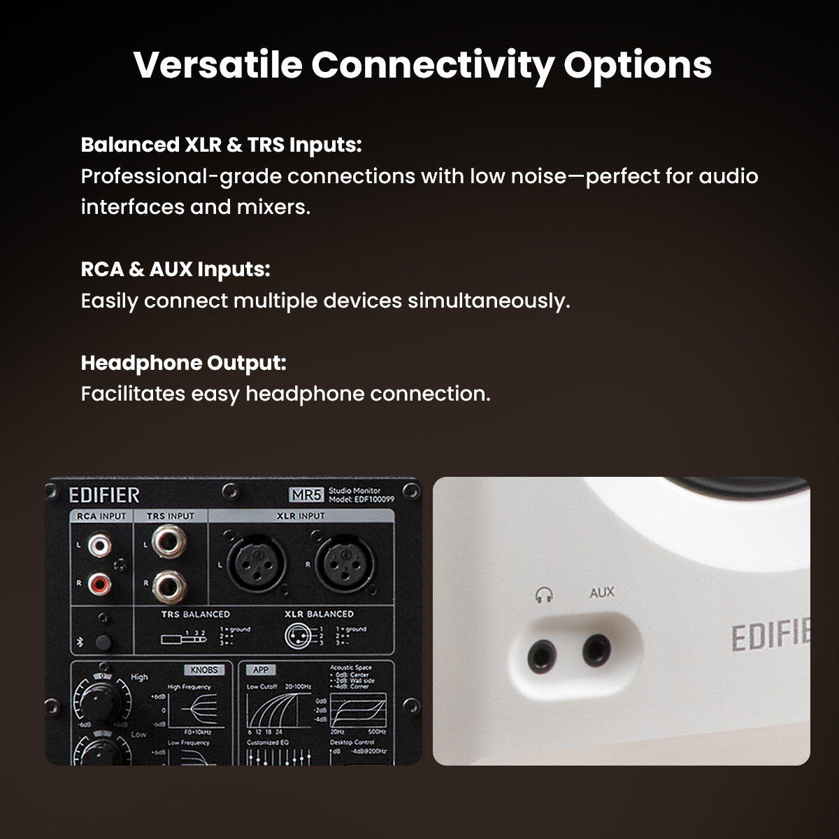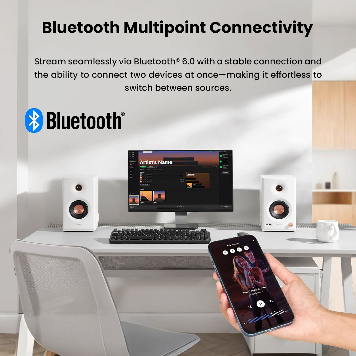 Works with EDIFIER ConneX Mobile app for sound effect switch, EQ customization, room acoustic compensation settings, user manual and etc