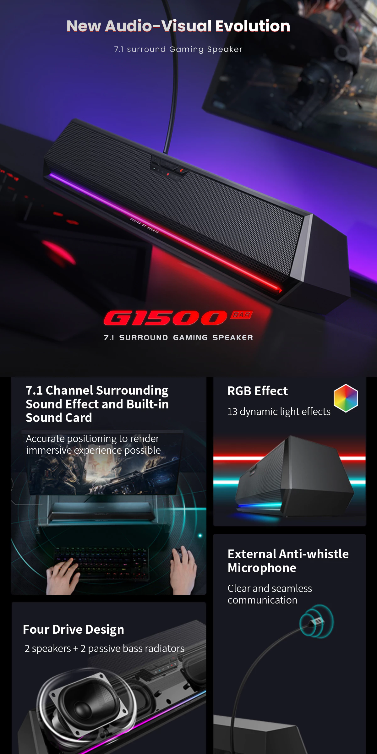 Edifier G1500 BAR Virtual 7.1 Surround Sound Gaming Soundbar