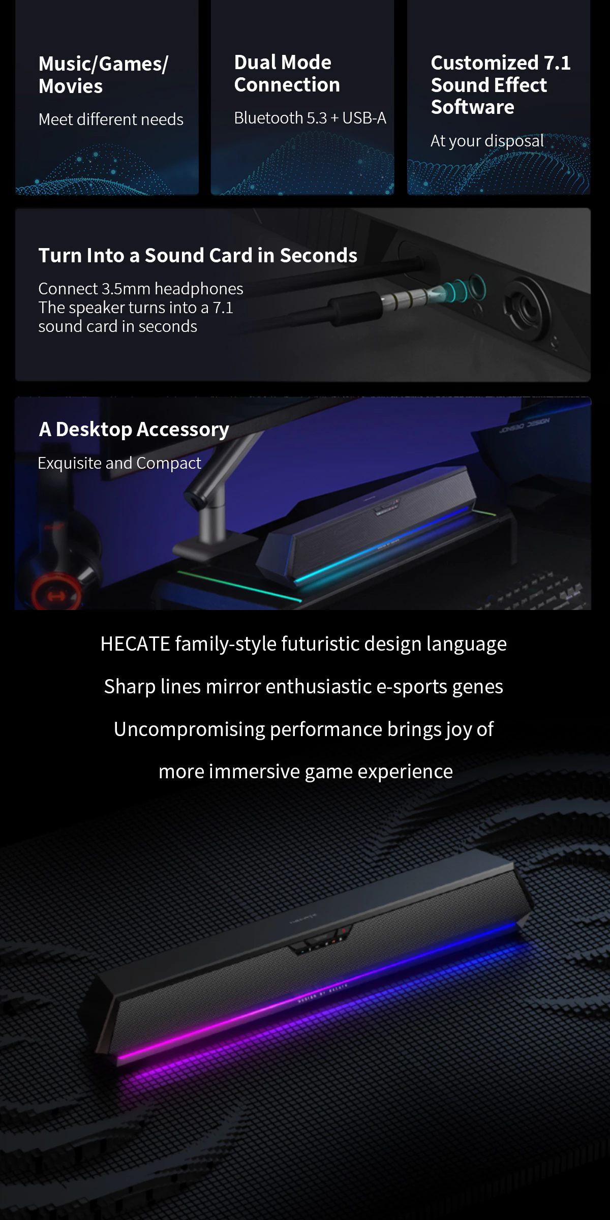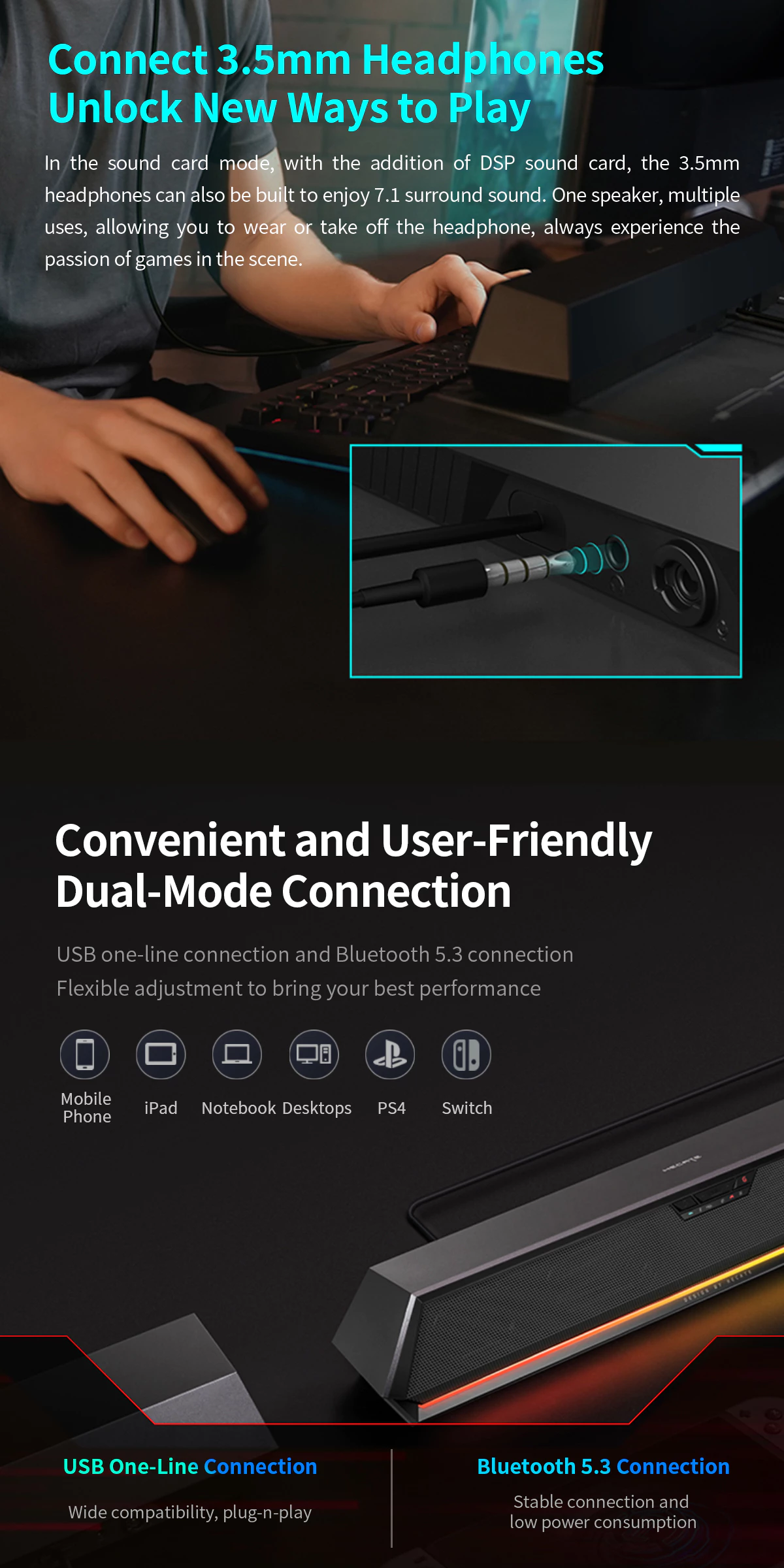 - Connectivity: USB-A Soundcard / Bluetooth