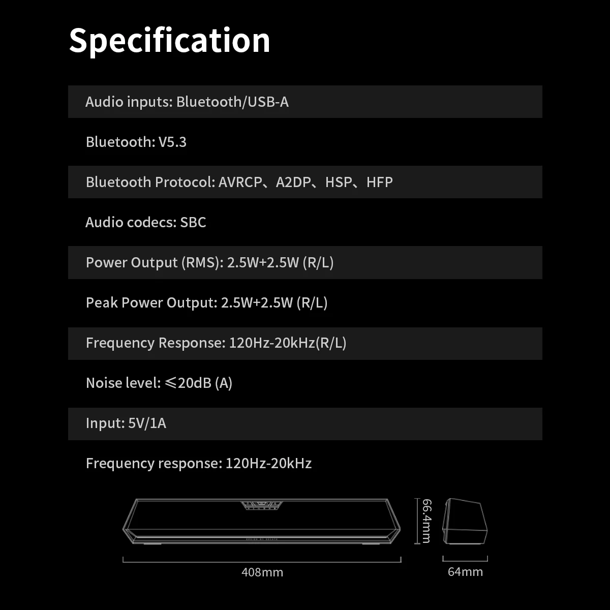 - Input Power: USB-A 5V