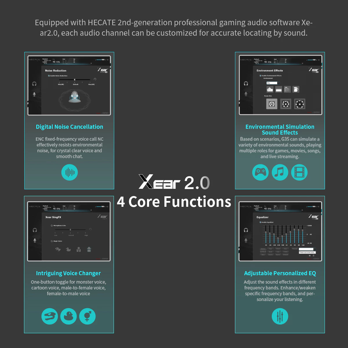 - HECATE professional sound effect software support sidetone, EQ selection,magic voice and other more functions