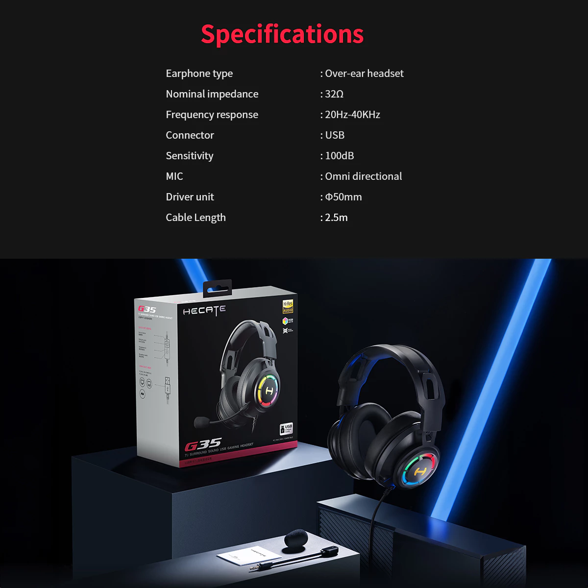 - 7.1 surround sound and 50mm driver delivers excellent sound quality, high precision and audio clarity, creating a wild soundstage which presents all the details on the game world