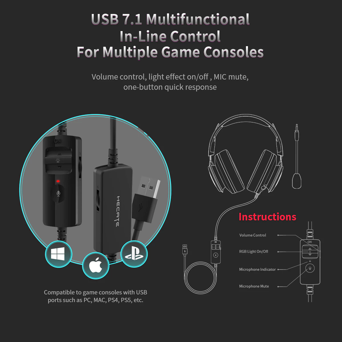 - 6 groups of 16.8 million colors lighting effect to blast your gaming atmosphere and switch via the in-line controller