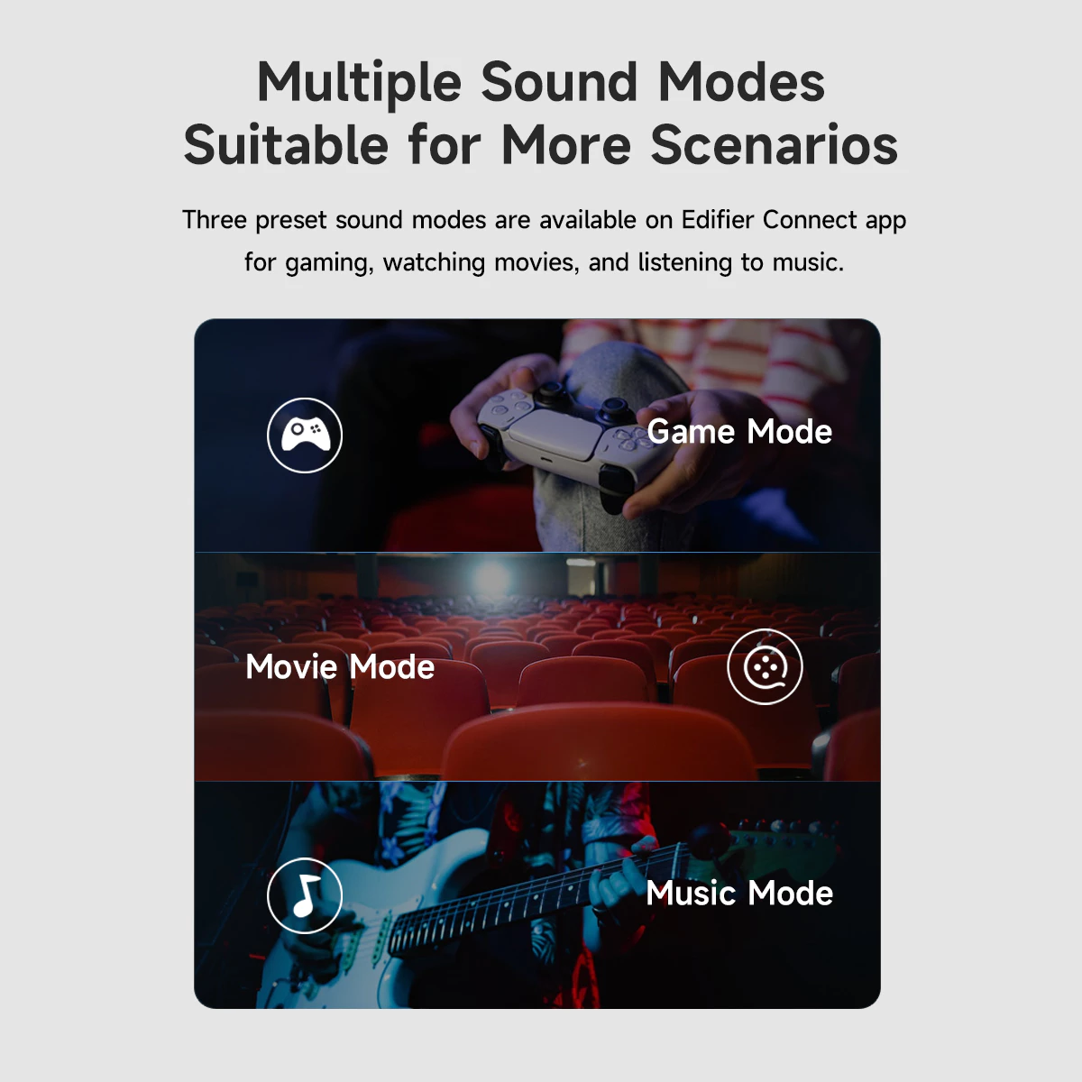 • Multiple Sound Mode (Music, Movie and Game)