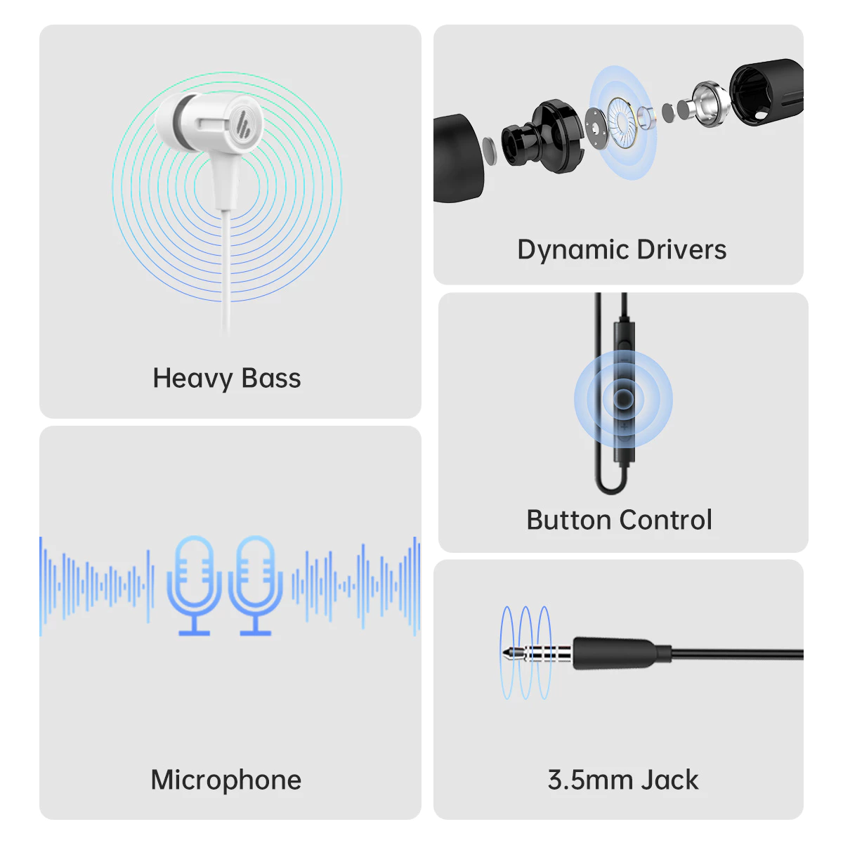 Edifier P180 Plus Classic Wired Earphones with Mic | 14.2mm Large Driver