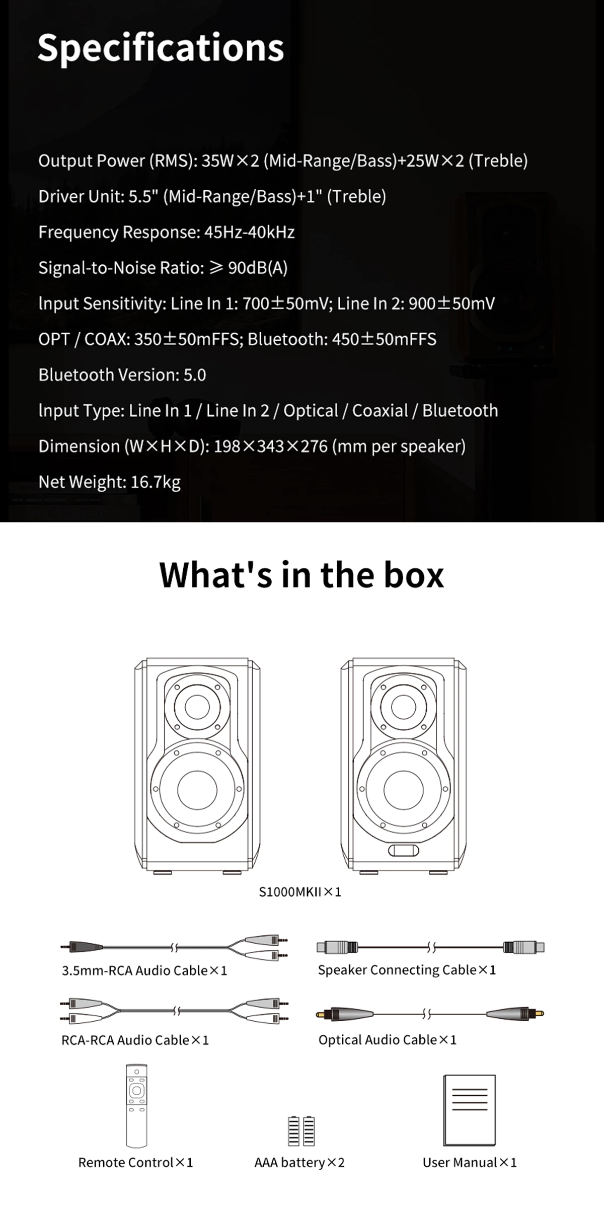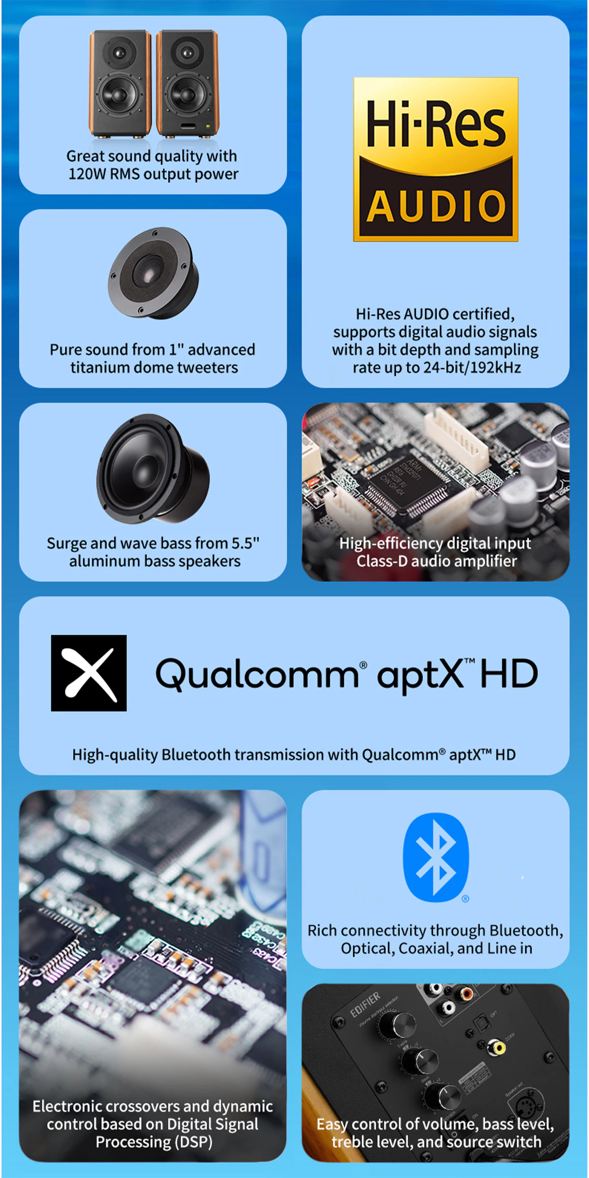 • Multiple inputs as Wi-Fi/Bluetooth/Optical/Coaxial/Line in