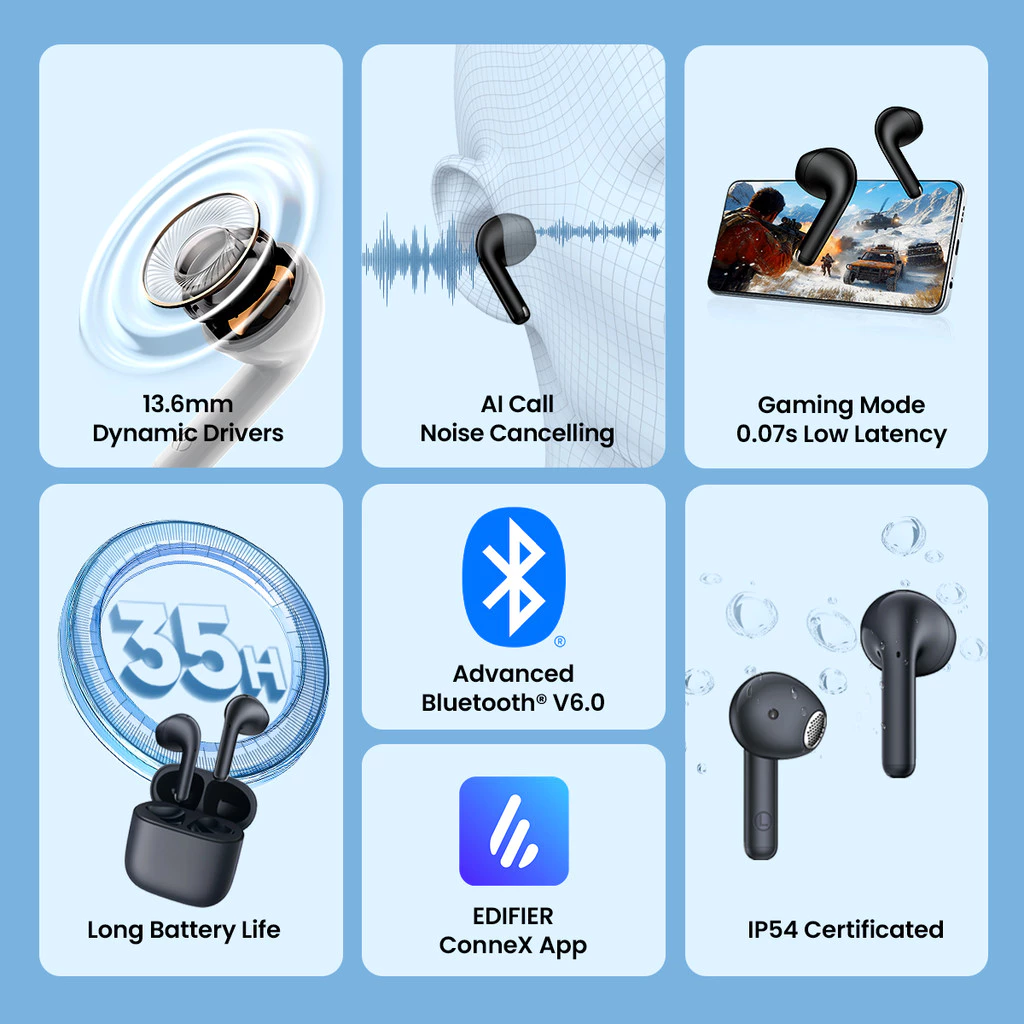 Edifier X2 Plus Wireless Earbuds | Latest Bluetooth 6.0 & 28H Playtime